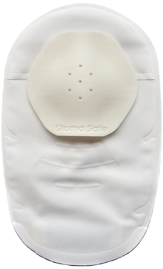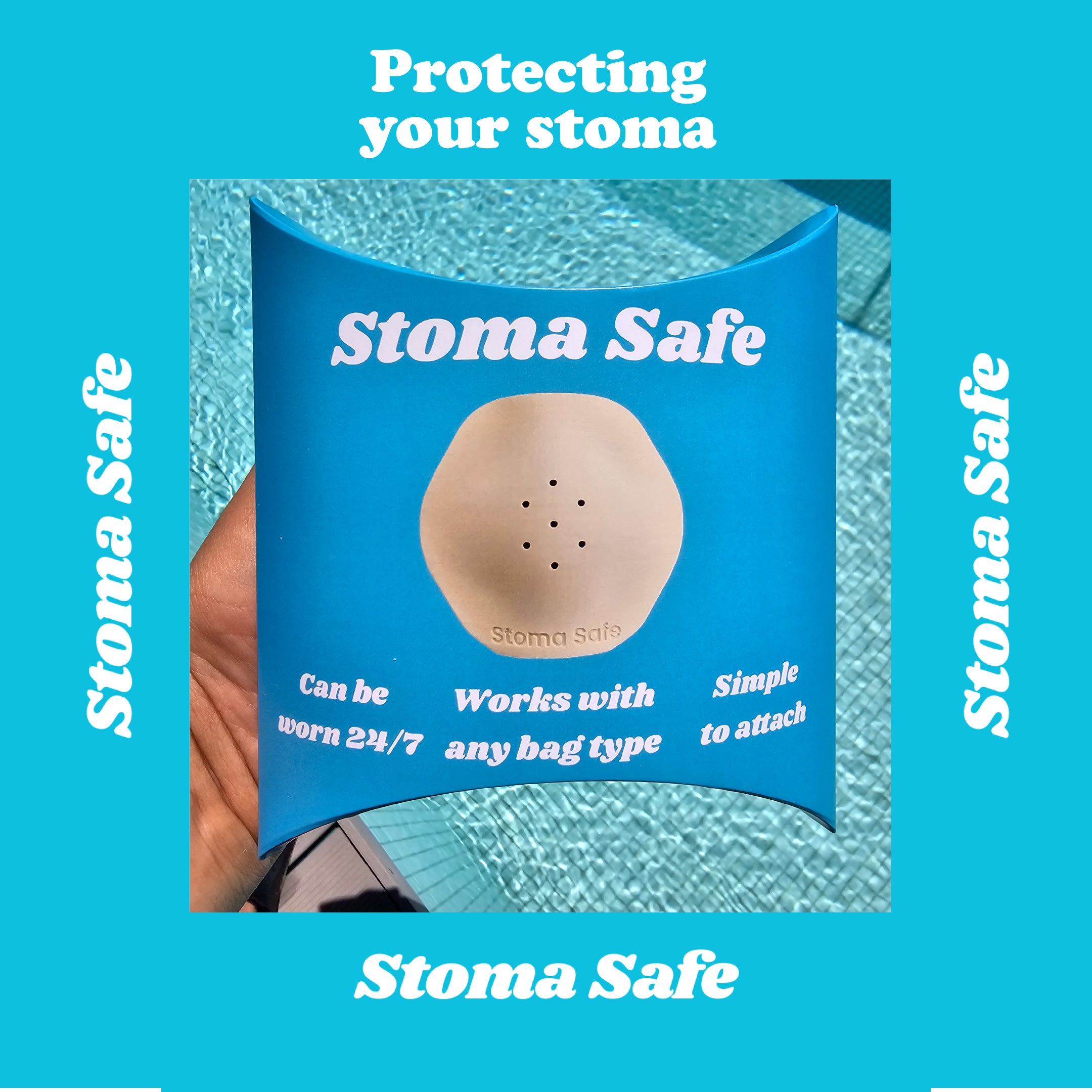 Stoma Safe is a lightweight shell that sticks to the outside of your bag and protects your stoma from life's daily knocks & bumps